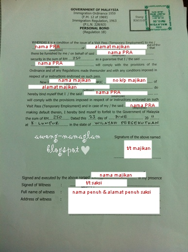 nota: saksi dalam borang di atas boleh pilih di kalangan kawan-kawan7. Perjanjian Pekerjaan oleh PRA yang dimatikan setem RM10.00 (2 set asal & 2 set salinan)